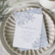 Chá de panela moderno de inverno, com design de com aquarela apresenta gráficos em floco em azul empoeirado, com tipografia de script com letra de mão. Entre em contato com o designer para produtos correspondentes. Copyright Anastasia Surridge for Elegant Invites, todos os direitos reservados.