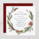 O chá de panela de inverno apresenta uma faixa de aquarela verde, poinsettias e pinecones. Personalize com suas informações ou clique em "Clique para personalizar mais" para editar estilos de fonte, tamanho e cores.