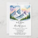 Celebre seu dia especial com este elegante design de montanha de aquarela, com picos de neve, céu pastel macio e árvores cada vez verdes. Perfeito para casamentos no inverno rústicos, ao ar livre, ou ao ar livre, esta trabalho de arte traz um toque de beleza natural e romance sereno para seus convites, salvas as as datas, e papelaria de casamento. Crie uma primeira impressão inesquecível que reflete o seu amor pelo excelente ao ar livre e pela elegância do eterno.