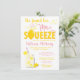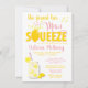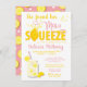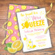 Ela Encontrou Seus convites de festas De Chá de panela De Apertar. Possui um grande limão apertado, fatias de limão, limonada de maçã e fontes de casca de limão. Cores de rosa, branco e amarelo.