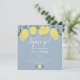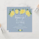 Apresentando limões verdes em um fundo azul empoeirado, este chá de panela quadrado na moda divertido pode ser personalizado com suas informações especiais sobre eventos e suas iniciais de monograma no verso. Projetado por Thisnotme©