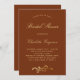 Cor de fundo cor de laranja queimada. Personalize e adicione seus nomes e detalhes. Texto do ouro. Decorado com uma suja espiral de ouro, Sprig. Fundo: fundo laranja queimado.