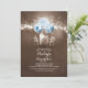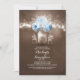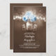 O chá de panela Rustic apresenta luzes de cordas penduradas no galho da árvore e pequenos potes agudos de pedreiro com rosas azuis e o hálito do bebê floresce. A mão pintada de jarro de pedreiro no centro tem um coração amoroso e iniciais de casal. Outros frascos de mason prendem apenas a respiração do bebê branco. Convidado perfeito para chá de panela rústico com flores de turquesa. Convite bonito e caprichoso para o chá de panela ao ar livre com luzes cintilantes, pirilampos e frascos de mason florais.