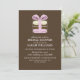 Os convites para Na moda e chic apresentam uma ilustração vetorial fofinha de seis biscoitos franceses, castanhos, beges e azuis ou aqua, dentro caixa de presente com um arco no topo. Visite nossa loja para ver mais opções de cores e produtos correspondentes.