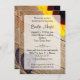 Este convite romântico caracteriza um fechamento coração-dado forma ajustado dentro da madeira. Um girassol descansa no canto superior. Personalize este convite com os detalhes de seu chá de panela. Personalize a parte traseira com as iniciais do monograma do casal e a data do casamento. Estes convites são grandes para partidos do girassol, do celeiro, os rústicos, ou do país de chá de panela.