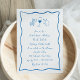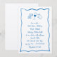 Convide os convidados a comemorar a noiva a estarem com belos convites de chá de panela de inspiração italiana com letras cursivas de estilo manuscrito acentuadas com uma borda de fita escrivada em azul vibrante. Ilustrações desenhadas à mão de massas alimentícias com arco, vinho e um limão siciliano completam a design de um olhar de verão na costa de Amalfi. Estes convites de chá de panela elegantes do Mediterrâneo têm um doce sentimento feito à mão e parecem especialmente bonitos em papel Laid texturizado.