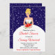 Este chá de panela festivo e divertido apresenta uma linda noiva loura num vestido branco de casamento com um buquê de flor de poinsettia. Ao fundo há flocos de neve sobre fundo azul marinho. O texto combina fontes de script e sans serif para uma aparência na moda e moderna. Isto é perfeito para um Chá de panela temático de Natal ou inverno. Gráficos de Mujka
