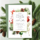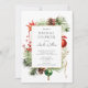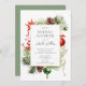 Este elegante chá de panela de Natal apresenta uma delicada estrutura de aquarela com ornamentos de bola de Natal, pinecones e bagas ocas. O convite é perfeito para celebrar a noiva que se aproxima durante o feriado. A frente do convite apresenta a coroa e o nome, data, hora e local da noiva do chá. O design geral é festivo e sofisticado, e o convite é para impressionar seus convidados.