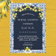 Personalize este deslumbrante Convite de Chá de Noiva Italiano de Limão, perfeito para celebrar um evento sofisticado. Estes convites elegantes apresentam um vibrante design de aquarela de limões amarelos exuberantes e folhas verdes, evocando a beleza pitoresca da Costa Amalfitana. Um arco sofisticado em azul-marinho emoldura o centro, complementado por azulejos italianos intricados e estampados em azul ao redor da borda. O motivo de frutas cítricas adiciona um toque fresco e animado, tornando estes convites uma escolha ideal para uma Festa de Chá de Noiva de Limão ou Piquenique com um estilo Italiano Chic.