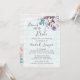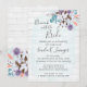 Acentue seu casamento country sulista com o charme elegante do estilo aquarela! Este design único apresenta um fundo com textura de madeira rústica realista e elementos de spray floral botânico de algodão doce. A paleta de cores da moda usa tons suaves de coral, lavanda, turquesa e tons terrosos. Celebre seu amor com amigos e familiares em todo o conforto caseiro do estilo de vida sulista.