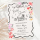 Um moderno chá de panela de escrivagem, branco e engraçado, seguindo a última tendência do papel de carta de casamento. Um quadro ondulado e ilustrações de flor silvestre fazem dele um convite de tendências contemporâneas perfeito.