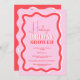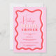 Um legal chá de panela de nome a negrito com a fotografia de casamento ondulada do rabanete vermelho-rosa retrorreflector. Todos os textos, nomes e cores de fundo são personalizáveis para você misturar e combinar com seu pacote de casamento.