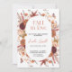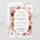 Chá de panela de orçamento do estilo moderno boêmico com flores aquáticas e folhas de outono em tons sujos como marrom-ferrugem, laranja queimado e terracota. Escolha perfeita para casamentos no outono.
