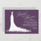 O chá de panela elegante para a noiva-a-ser apresenta uma fonte de escrita de caligrafia de ornamentado e um vestido de noiva fluente. O escroto floresce, flores e borboletas detalham o vestido etéreo. Cinzas brancas, de platina, e cor design púrpura de ameixa/berinjela.