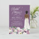 Sério, ooh la la! Ponha o tom para seu chá de panela luxuosamente elogioso com este convite, apresentando uma linda noiva em um vestido, lindas flores botânicas lusaciosas em tons de lavanda, violeta, roxo e elegante texto. Personalize-o para o seu evento. Há um tom ligeiramente rústico com as flores no verso e a madeira de latido de pássaro, o que torna este design perfeito para os seus eventos de primavera, verão ou casamento outono e chá. Procure outras cores neste design, incluindo noivas bonitas em vários tons de pele e cores de cabelo, para torná-lo verdadeiramente pessoal! Você pode personalizar todo o texto e alterar a cor do plano de fundo para o que você escolher.