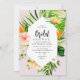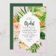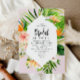elegante mão pintada de flores de aquarela e folhas de palma, tema tropical. O texto e as cores podem ser editados.