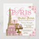 Convite Chá de panela de Paris rosa e Dourado