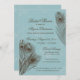 Bonito azul macio com convite de pena de pavão marrom para chás de panela ou qualquer ocasião. Altere o texto conforme necessário.