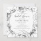Um elegante design de flores preto e branco com lindas peônias, perfeito para um casamento chic e moderno. Totalmente personalizável: você pode facilmente mudar a cor do texto ou das flores para se adequar ao seu gosto.