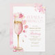 Este convite impressionante apresenta um vidro prosecco, ouro e rosa, adornado com delicados florais e pétalas cor-de-rosa. O design é perfeito para as Petais Chic e o Prosecco teme brunch e celebração à bolha. Com caligrafia graciosa e detalhes florais elegantes cor-de-rosa, este convite combina sofisticação moderna com charme de eterno. Personalize-o com os detalhes do evento para criar um lançamento cativante e memorável.