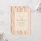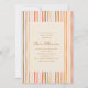 Este chá de panela lúdico apresenta faixas verticais desenhadas à mão em amarelo-mostarda, rosa-pincel, terracota e pêssego sobre um fundo de creme suave. As linhas flutuantes dão-lhe uma vibração retrormoderna — simples, na moda, e perfeita para uma celebração de outono ou vassoura. O layout do convite é limpo e fácil de ler, enquadrado pela borda vibrante da faixa.