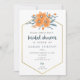 Califórnia cai na tangerina macia misturada com blues ardentes. Uma borda dourada adiciona um elemento de elegância e sofisticação. Um convite suave e simples perfeito para sua noiva primavera/verão/outono.