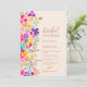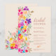 Uma moderna e delicada mão pintada de flores silvestres de jardim em tons brilhantes, rosa, vermelho, azul, amarelo e verde, com uma elegante letra de pincel para celebrar seu chá de panela de verão ao ar livre em estilo bege.