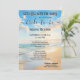 Retro chá de panela de praia com uma pintura aquarela de praia em um belo dia. Na parte traseira está um modelo de código QR (opcional) fácil de personalizar. Bonito para um casamento planejado, casamento náutico ou casamento de praia.