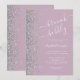 A borda esquerda deste elegante e moderno brunch e chá de panela borbulhante apresenta uma borda cintilante prateada. O texto personalizável combina manuscrito branco, fontes em copperplate e itálico em um fundo lilático empoeirado. O verso apresenta um design de lilás e prata correspondentes.