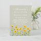 Personalize este belo Chá de panela Boho Floral Primavera, perfeito para celebrar a noiva-a-ser! Estes convites apresentam um design impressionante de flores silvestres amarelas do sol com folhas verdes de sábio, colocadas sobre um delicado fundo verde de sábio pastel. Combinados elementos de feminilidade e elegância, esses convites são ideais para um cenário rústico e boêmico. Quer você esteja hospedando uma festa de chá de panela bô, um almoço aconchegante, ou um piquenique agradável, esses convites adicionarão um toque de charme e sofisticação ao seu evento especial. Celebre com estilo estes convites de chá de panela de flor silvestre e torne o seu dia especial inesquecível!