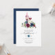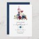 Convite para provando de vinho de chá de panela de aquarelas com marinho azul, branco e marrom e rosas com tipografia elegante para escrita manual.