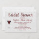 Design de Provando para um evento de Chá de panela russo único, com um copo de vinho tinto, local de colheita, belas fontes sobre um fundo branco de couro. O texto, a fonte e a cor das fontes podem ser personalizados. Use a ferramenta Personalizar para adicionar suas informações.