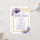 Convites de chá de panela Dourados Florais Roxos Modernos.