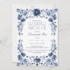 Possuir uma celebração de eterno com este elegante chá de panela floral azul, desenhado com um quadro clássico no estilo porcelana e delicados florescimentos botânicos. O marinho refinado e a paleta azul empoeirada é perfeito para um tema de noiva formal ou "algo azul". Com elegância vintage e simplicidade moderna, este convite combina com festas de jardim, chás de chá ou assuntos elegantes no interior. Personalize facilmente o texto para se adequar ao seu evento.