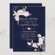 Design Elegante de Placas Flores Brancas Douradas. Apresenta elegante falso quadro de flores brancas rosa douradas, divisor floral dourado rosa, tudo sobre fundo azul escuro. Use a ferramenta Personalizar para adicionar suas informações, alterar a cor de fundo. Para obter itens correspondentes, visite minha Coleção de Flores Brancas Douradas Rosa.