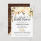 Design floral rústico simplesmente elegante em madeira rústica de cor verde-verde (aquarela), cor-de-rosa-pincel, bege, champanhe, baunilha, pêssego, rosas de flores brancas-laranja/pénia em fundo branco e letras negras. Convites de chá de panela de casamento deliciosos para o tema do primavera ou verão. Perfeito para o outono/Cartões de outono. A parte traseira do cartão tem o nome da futura mrs.