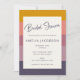 Este chá de panela divertido e moderno apresenta faixas de blocos coloridos empilhadas na mostarda, no pincel, na mauva e no fundo da ameixa, emparelhadas com um roteiro manuscrito e fontes serif limpas. A paleta de na moda e o layout a tornam ideal para chás de outono, temas de vassoura ou celebrações com inspiração retrorreflectora. Personalize com o nome da noiva e os detalhes do evento.