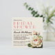 Chá de panela branco clássico de rosa. Tema floral para o casamento da primavera com flores em todos os lugares. Decorado com padrão de listras no verso. Rosas brancas florescentes. Personalize o convite para qualquer ocasião especial, como casamento, festa de noivado, comemoração de aniversário, aniversário do marco, chá de fraldas e muito mais.