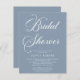 Chá de panela de Script Azul Clássico Dusty mínimo. Mostradas em azul empoeirado, entretanto, muitas cores estarão disponíveis. Você também pode mudar facilmente a cor de fundo na ferramenta design para coordenar com seu tema de casamento.
