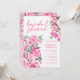 Elegante chá de panela casual com tipografia caligráfica moderna e bonito flores cor-de-rosa brilhante e aquarela verde. Uma reviravolta moderna ao estilo clássico romântico da aquarela floral.