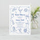 Convite Chá de panela de vaquinha azul brilhante Desenhado