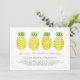 Convide a família e os amigos para o seu evento com este chá de panela do tema do abacaxi. Ele apresenta ilustrações aquarelas de abacaxis com padrões misturados. Personalize adicionando nomes, data, hora, local e outros detalhes do evento. Este convite para abacaxi é perfeito para chás de panela de verão e de luau.
