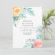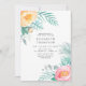 Convites de chá de panela de Verão exóticos, cor-de-rosa e amarela, com ervilhas, eucalipto, rosas, suculentos, lisianthus, folhas e suculentos de mentol.