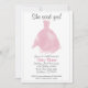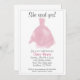 Este chá de panela apresenta um vestido de noiva cor d'água cor rosa e o texto "Ela disse sim". É uma bela escolha celebrar qualquer futura noiva elegante!