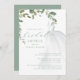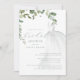 Watercolor Greenery Wedding Dress Chá de panela Elegante Script Modern Classic Este convite apresenta um vestido de noiva de cor aquática simples e caligrafia verde de sábio personalizada.