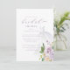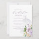 Chá de panela de Vestido de Casamento de Aquarela Púrpura Este convite apresenta um vestido de noiva de cor aquática simples e caligrafia de lavanda mole personalizada.