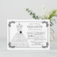 chá de panela moderno único com um vestido bonito de noiva negra num cabide armado com um belo quadro de folhas floreadas e elegante sobre um fundo branco. O vestido de noiva tem as palavras "aqui vem a noiva" escritas nela e uma flor na cintura. Sacudir o convite para encontrar uma cor preta correspondente de volta para um toque especial extra. Na moda e contemporâneo, com um toque de chá de casamento de noiva bonito vintage está disponível em nosso compro em outras combinações de cores populares.