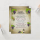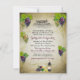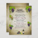 Levante seu copo e brinque a futura noiva. Este convite para noiva/chá de casamento celebra a noiva (e noiva) com uma cena de um vinhedo contra uma superfície de pergaminho meteorológico. Uvas penduradas ao longo de uma moldura de videira o convite com uma ilustração macia com uma coloração de um vinhedo no topo. Abaixo estão dois copos de vinho com uma garrafa de vinho. As espirais decorativas estão espalhadas ao longo do convite para amarrar o aspecto da videira. Disponível com produtos correspondentes.