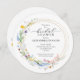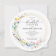 convites de chá de panela redondos de na moda com uma elegante coroa de flores silvestres de cor d'água, e seus detalhes em caracteres quicos. Solicite IMPRESSO, DOWNLOAD INSTANTÂNEO ou ambos! **TIP: Esse tamanho requer postagem extra - e-mail em um envelope A7 (5,25" x 7,25") para não ter custo de postagem extra. CORRESPONDENTE a itens na nossa coleção.