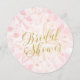 convites de chá de panela bonitos com uma bela ilustração vetorial de um diamante rosa e um texto de folha de ouro falso.